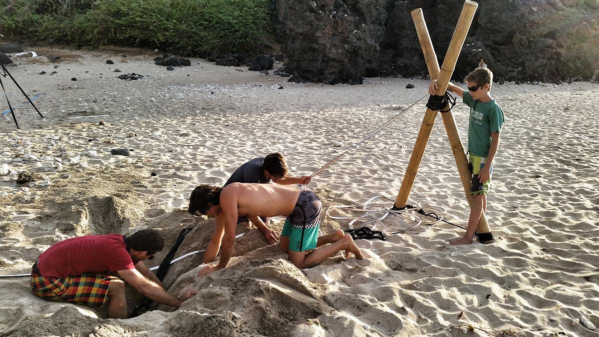 Évidement, partie la plus chiante de la pose de la Slackline…