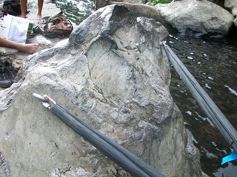 Une fois arrivé au bout du sentier, les broches sont sur le rocher qui termine le canal.
